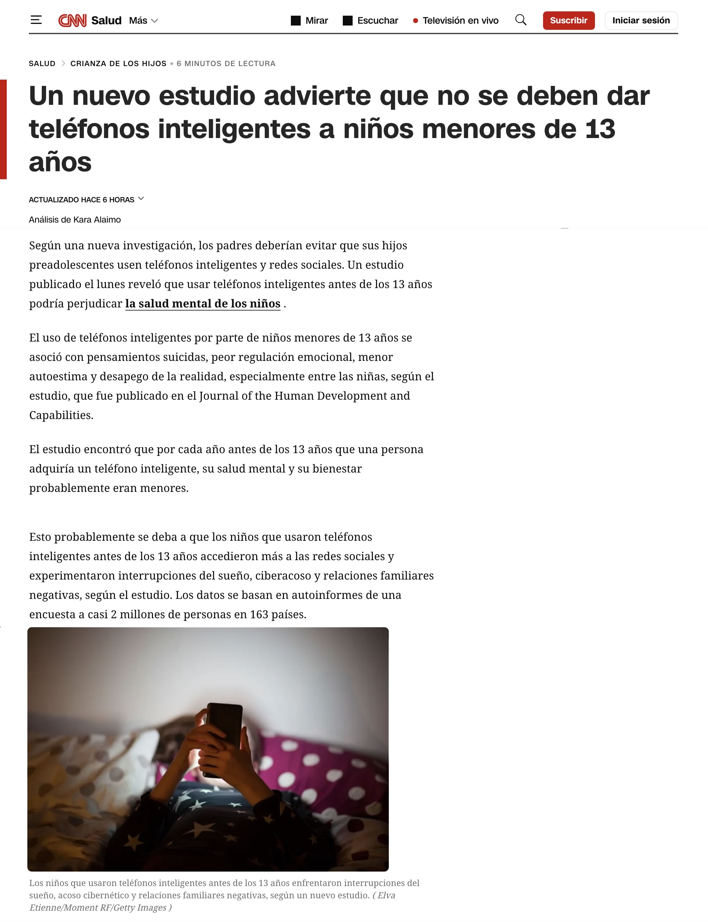 Por qué un móvil antes de los 13 años afecta la salud mentalby Ricky Yuon Posted on July 22, 2025July 22, 2025 Referencia: Journal of Human Development and Capabilities, Volume 26, Issue 2, 2025.